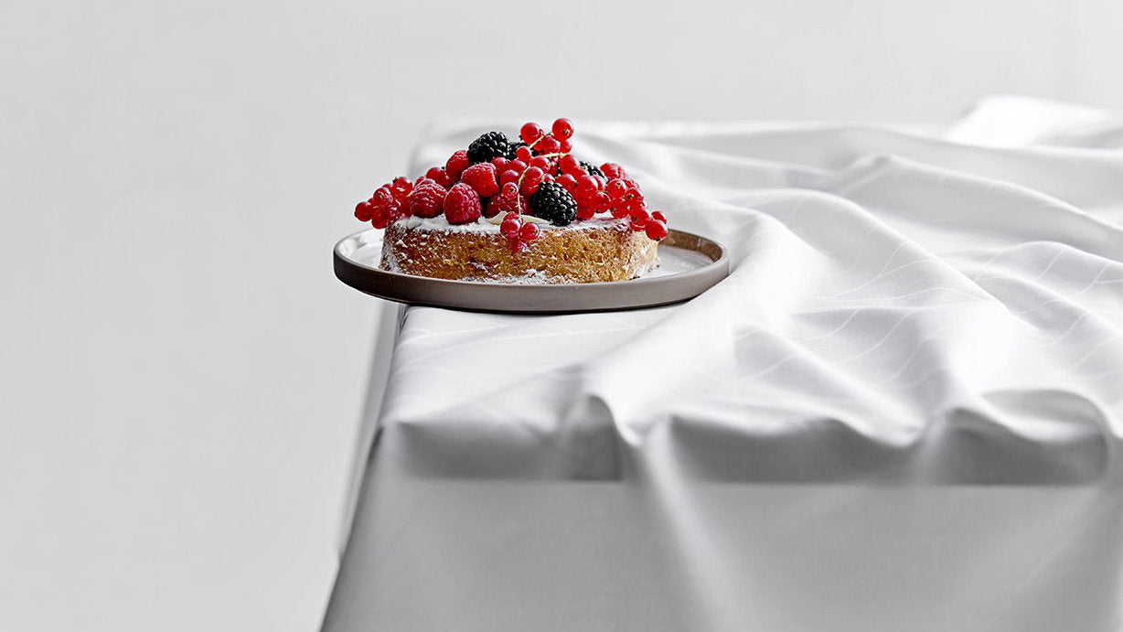 Akryldugen falder og reflekterer lyset som en klassisk stofdug. Den ligner en tekstildug, men er skabt til hverdagen og tørres nemt af, når livet leves omkring bordet.