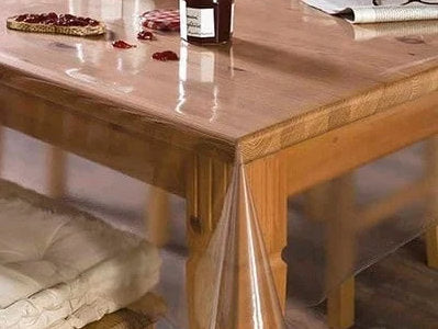 En klar plastdug, der beskytter bordet uden at skjule det.